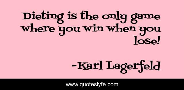 This page presents the quote "Dieting is the only game where you win when you lose!". Author of this quote is Karl Lagerfeld. This quote is about dieting, woman, wise, look, weight, pounds, win, image, diet,.