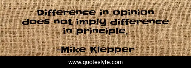 This page presents the quote "Difference in opinion does not imply difference in principle.". Author of this quote is Mike Klepper. This quote is about opinion, difference-of-opinion, principles,.