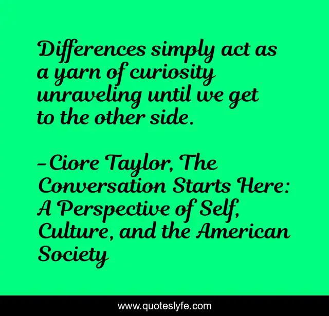 "Ciore Taylor, The Conversation Starts Here: A Perspective of Self, Culture, and the American Society Quotes." Quoteslyfe.com, 2025. Fri. 05 Dec. 2025. <https://www.quoteslyfe.com/quote/Differences-simply-act-as-a-yarn-of-78230>.