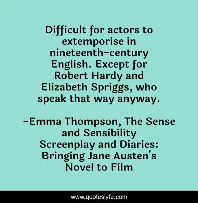 "Emma Thompson, The Sense and Sensibility Screenplay and Diaries: Bringing Jane Austen's Novel to Film Quotes." Quoteslyfe.com, 2025. Sun. 07 Dec. 2025. <https://www.quoteslyfe.com/quote/Difficult-for-actors-to-extemporise-in-nineteenth-159063>.