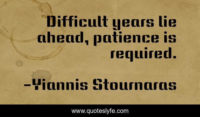 "Yiannis Stournaras Quotes." Quoteslyfe.com, 2025. Mon. 08 Dec. 2025. <https://www.quoteslyfe.com/quote/Difficult-years-lie-ahead-patience-is-required-294750>.