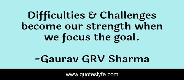 This page presents the quote "Difficulties & Challenges become our strength when we focus the goal.". Author of this quote is Gaurav GRV Sharma. This quote is about strength, success, business, focus, winning, challenges, difficulties, goals, achievement,.