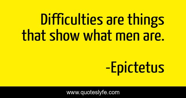 This page presents the quote "Difficulties are things that show what men are.". Author of this quote is Epictetus. .
