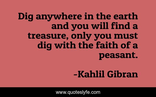 This page presents the quote "Dig anywhere in the earth and you will find a treasure, only you must dig with the faith of a peasant.". Author of this quote is Kahlil Gibran. .