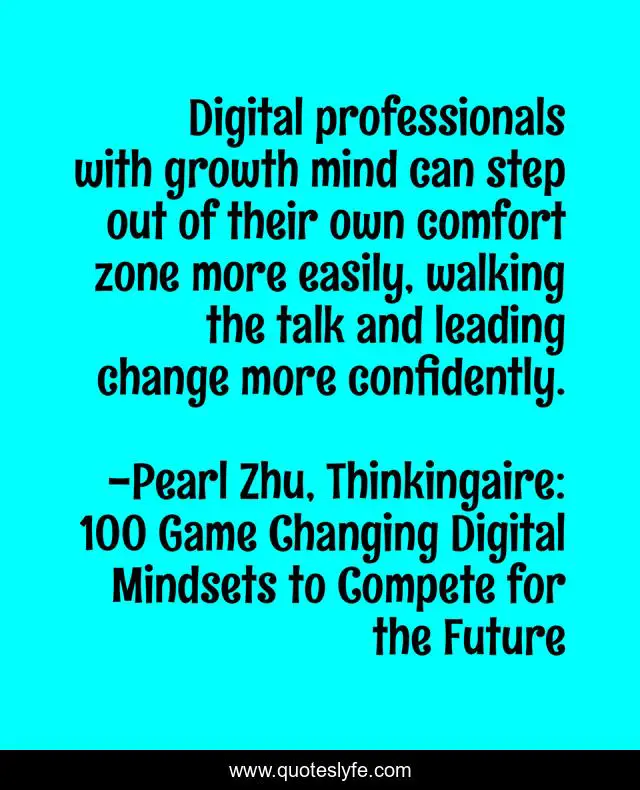 This page presents the quote "Digital professionals with growth mind can step out of their own comfort zone more easily, walking the talk and leading change more confidently.". Author of this quote is Pearl Zhu, Thinkingaire: 100 Game Changing Digital Mindsets to Compete for the Future. This quote is about growth-mindset, digital-mind, change,.
