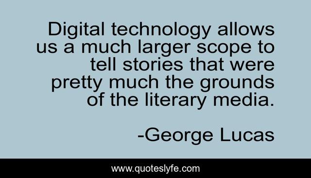 This page presents the quote "Digital technology allows us a much larger scope to tell stories that were pretty much the grounds of the literary media.". Author of this quote is George Lucas. This quote is about media, pretty, digital,.