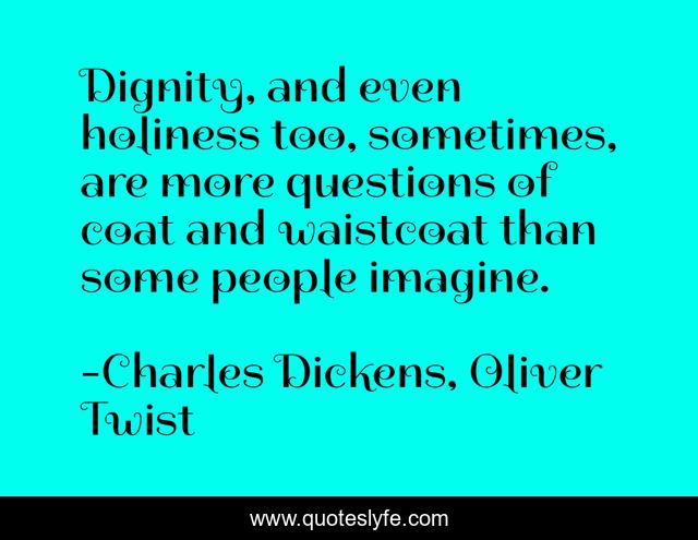 This page presents the quote "Dignity, and even holiness too, sometimes, are more questions of coat and waistcoat than some people imagine.". Author of this quote is Charles Dickens, Oliver Twist. .