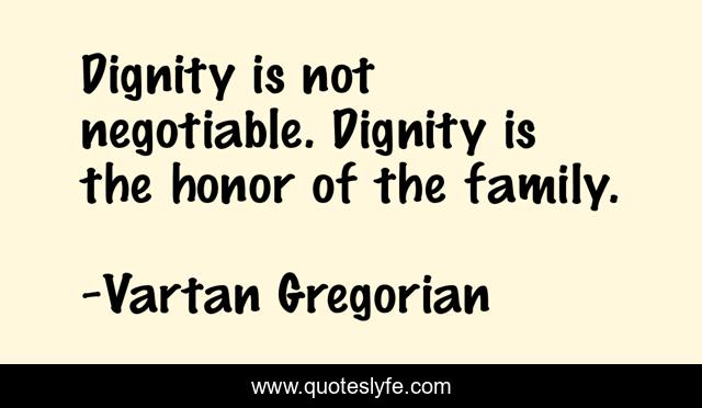 This page presents the quote "Dignity is not negotiable. Dignity is the honor of the family.". Author of this quote is Vartan Gregorian. This quote is about dignity, honor,.