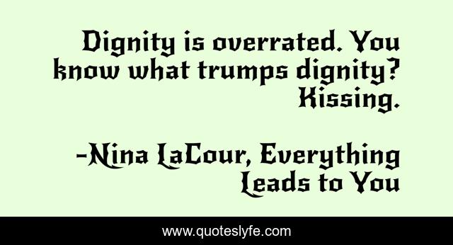 This page presents the quote "Dignity is overrated. You know what trumps dignity? Kissing.". Author of this quote is Nina LaCour, Everything Leads to You. This quote is about romance, young-adult-romance, humor, young-adult,.