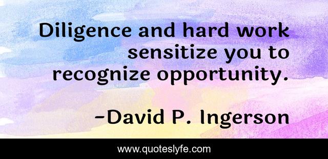This page presents the quote "Diligence and hard work sensitize you to recognize opportunity.". Author of this quote is David P. Ingerson. This quote is about inspirationalal, opportunity, hard-work, diligence,.