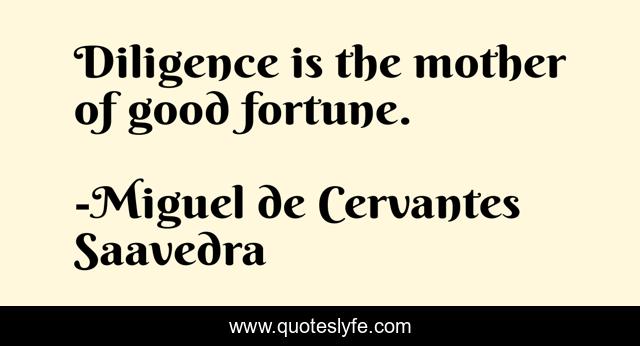 This page presents the quote "Diligence is the mother of good fortune.". Author of this quote is Miguel de Cervantes Saavedra. This quote is about fortune, success, diligence,.