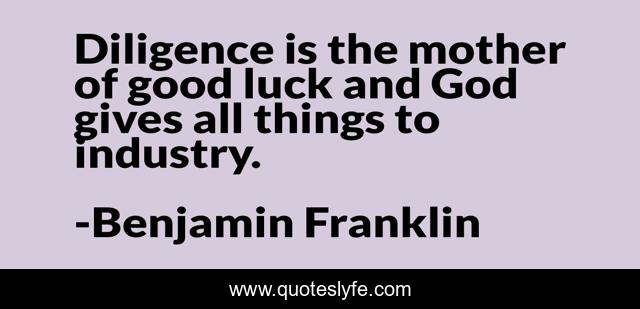 This page presents the quote "Diligence is the mother of good luck and God gives all things to industry.". Author of this quote is Benjamin Franklin. .