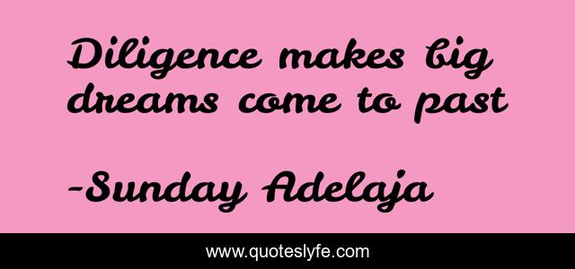 This page presents the quote "Diligence makes big dreams come to past". Author of this quote is Sunday Adelaja. This quote is about diligent, dreams, diligence,.