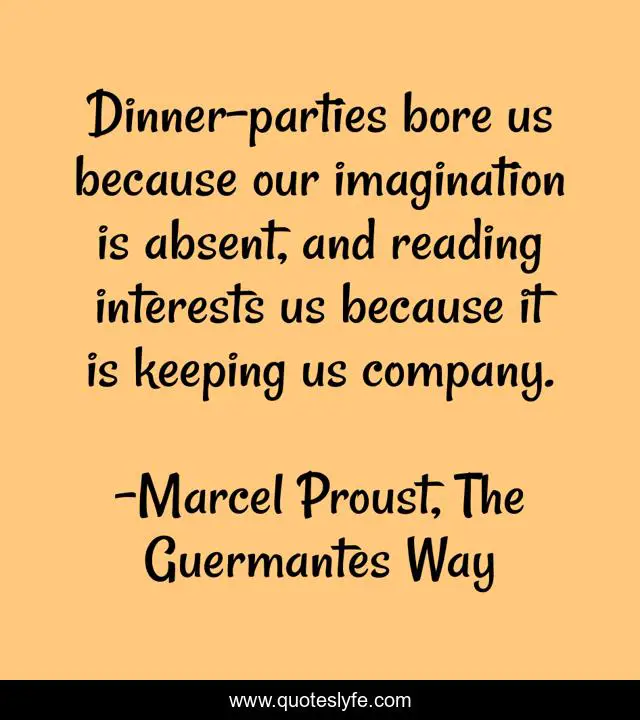 "Marcel Proust, The Guermantes Way Quotes." Quoteslyfe.com, 2025. Fri. 05 Dec. 2025. <https://www.quoteslyfe.com/quote/Dinner-parties-bore-us-because-our-imagination-254931>.