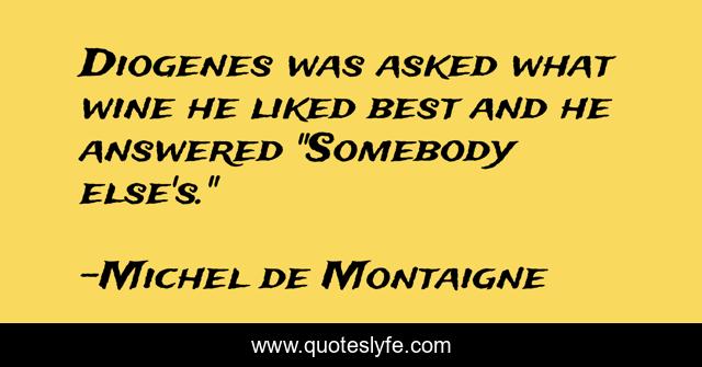 This page presents the quote "Diogenes was asked what wine he liked best and he answered "Somebody else's."". Author of this quote is Michel de Montaigne. .