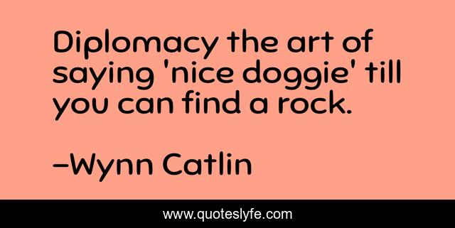 "Wynn Catlin Quotes." Quoteslyfe.com, 2025. Sat. 06 Dec. 2025. <https://www.quoteslyfe.com/quote/Diplomacy-the-art-of-saying-nice-doggie-277225>.