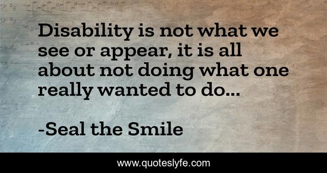 "Seal the Smile Quotes." Quoteslyfe.com, 2025. Fri. 05 Dec. 2025. <https://www.quoteslyfe.com/quote/Disability-is-not-what-we-see-or-204970>.