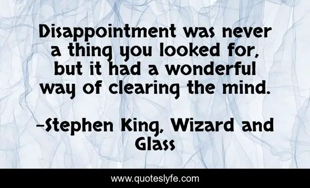 This page presents the quote "Disappointment was never a thing you looked for, but it had a wonderful way of clearing the mind.". Author of this quote is Stephen King, Wizard and Glass. .