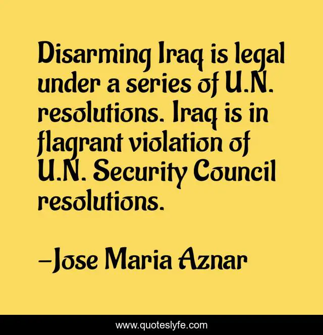 "Jose Maria Aznar Quotes." Quoteslyfe.com, 2025. Mon. 08 Dec. 2025. <https://www.quoteslyfe.com/quote/Disarming-Iraq-is-legal-under-a-series-329660>.
