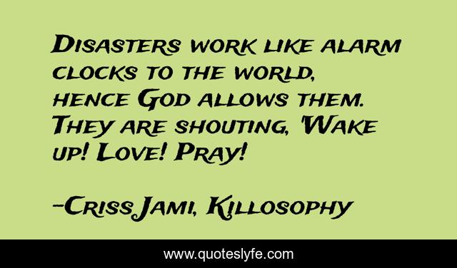 "Criss Jami, Killosophy Quotes." Quoteslyfe.com, 2025. Fri. 05 Dec. 2025. <https://www.quoteslyfe.com/quote/Disasters-work-like-alarm-clocks-to-the-11674>.