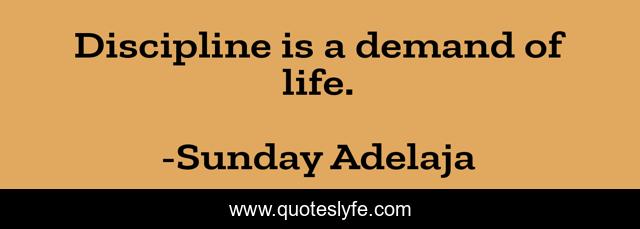 This page presents the quote "Discipline is a demand of life.". Author of this quote is Sunday Adelaja. This quote is about discipline, life, demand,.