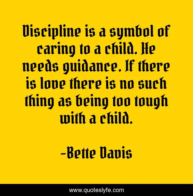 This page presents the quote "Discipline is a symbol of caring to a child. He needs guidance. If there is love there is no such thing as being too tough with a child.". Author of this quote is Bette Davis. This quote is about helping, people,.