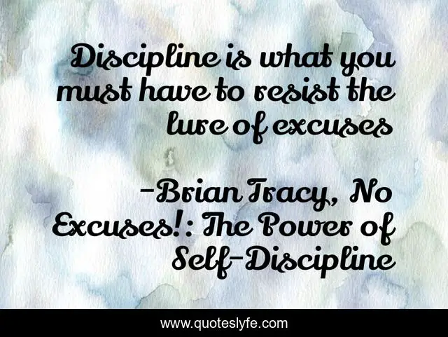 This page presents the quote "Discipline is what you must have to resist the lure of excuses". Author of this quote is Brian Tracy, No Excuses!: The Power of Self-Discipline. This quote is about discipline, self-help,.