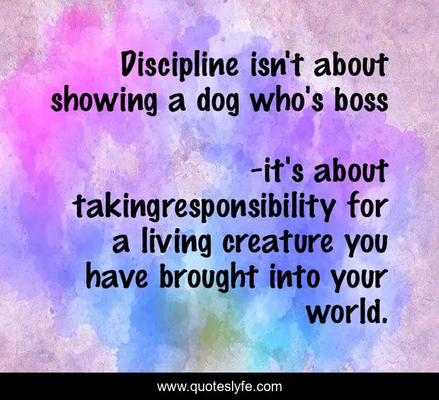 "it's about takingresponsibility for a living creature you have brought into your world. Quotes." Quoteslyfe.com, 2025. Sat. 06 Dec. 2025. <https://www.quoteslyfe.com/quote/Discipline-isn-t-about-showing-a-dog-207257>.