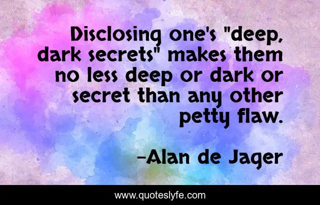 "Alan de Jager Quotes." Quoteslyfe.com, 2025. Fri. 05 Dec. 2025. <https://www.quoteslyfe.com/quote/Disclosing-one-s-deep-dark-secrets-makes-177994>.