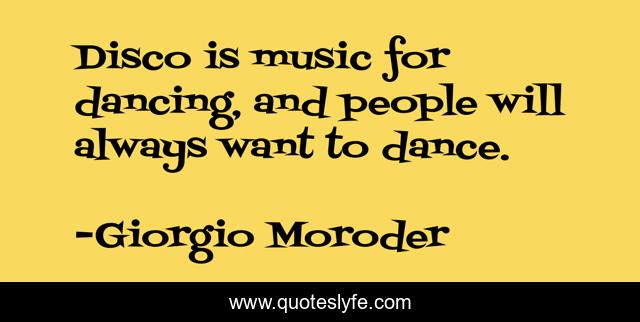 "Giorgio Moroder Quotes." Quoteslyfe.com, 2025. Mon. 08 Dec. 2025. <https://www.quoteslyfe.com/quote/Disco-is-music-for-dancing-and-people-296028>.