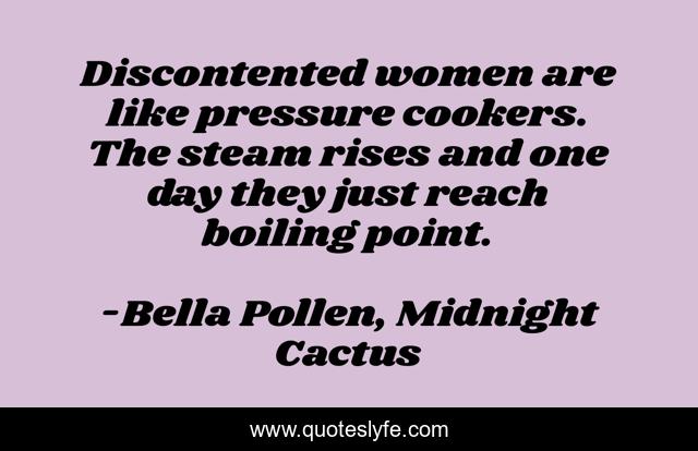 This page presents the quote "Discontented women are like pressure cookers. The steam rises and one day they just reach boiling point.". Author of this quote is Bella Pollen, Midnight Cactus. .