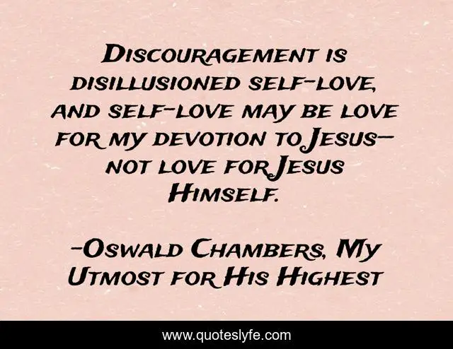 "Oswald Chambers, My Utmost for His Highest Quotes." Quoteslyfe.com, 2025. Fri. 05 Dec. 2025. <https://www.quoteslyfe.com/quote/Discouragement-is-disillusioned-self-love-and-self-147532>.
