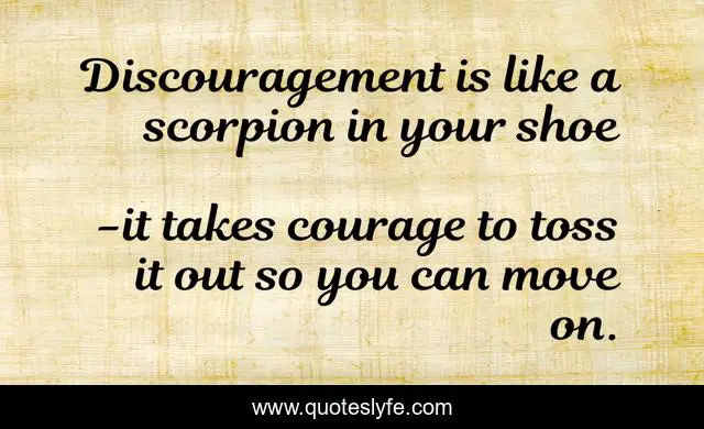 "it takes courage to toss it out so you can move on. Quotes." Quoteslyfe.com, 2025. Sat. 06 Dec. 2025. <https://www.quoteslyfe.com/quote/Discouragement-is-like-a-scorpion-in-your-114194>.