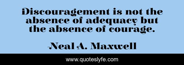 This page presents the quote "Discouragement is not the absence of adequacy but the absence of courage.". Author of this quote is Neal A. Maxwell. This quote is about discouragement, courage,.