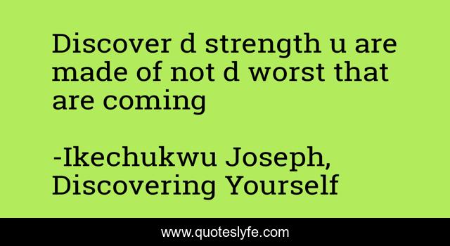 This page presents the quote "Discover d strength u are made of not d worst that are coming". Author of this quote is Ikechukwu Joseph, Discovering Yourself. This quote is about self-discovery, christian-life, help,.