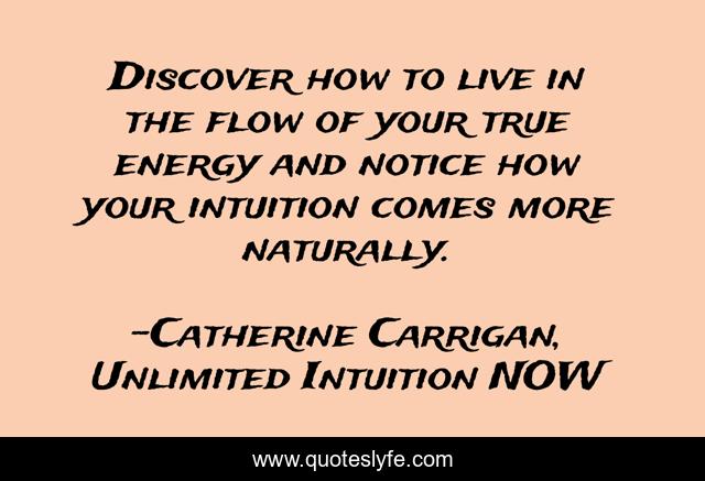 This page presents the quote "Discover how to live in the flow of your true energy and notice how your intuition comes more naturally.". Author of this quote is Catherine Carrigan, Unlimited Intuition NOW. .
