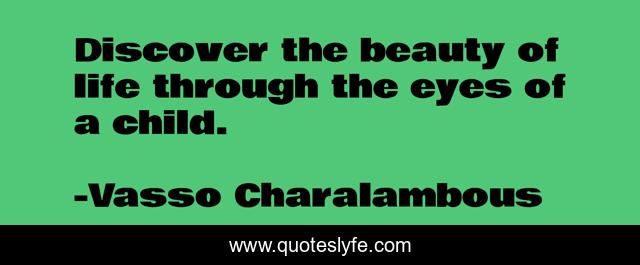This page presents the quote "Discover the beauty of life through the eyes of a child.". Author of this quote is Vasso Charalambous. This quote is about life, positive, motivational, confidence, optimistic, inspirational, enthusiasm,.