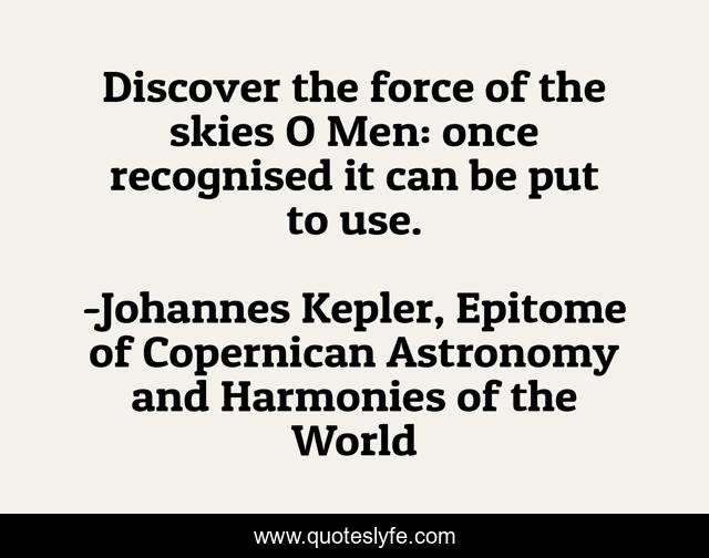 "Johannes Kepler, Epitome of Copernican Astronomy and Harmonies of the World Quotes." Quoteslyfe.com, 2025. Sun. 07 Dec. 2025. <https://www.quoteslyfe.com/quote/Discover-the-force-of-the-skies-O-41919>.