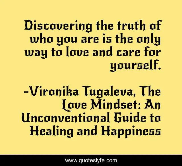 "Vironika Tugaleva, The Love Mindset: An Unconventional Guide to Healing and Happiness Quotes." Quoteslyfe.com, 2025. Sun. 07 Dec. 2025. <https://www.quoteslyfe.com/quote/Discovering-the-truth-of-who-you-are-147829>.