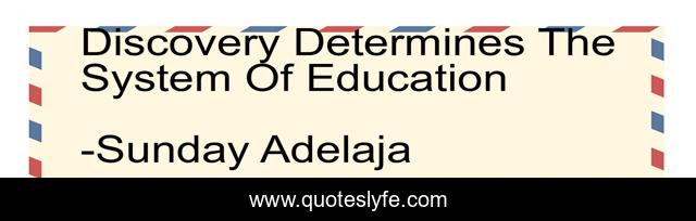 This page presents the quote "Discovery Determines The System Of Education". Author of this quote is Sunday Adelaja. This quote is about education, determines, system, discovery,.