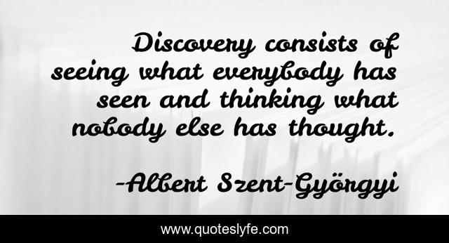 This page presents the quote "Discovery consists of seeing what everybody has seen and thinking what nobody else has thought.". Author of this quote is Albert Szent-Györgyi. This quote is about science, discovery,.