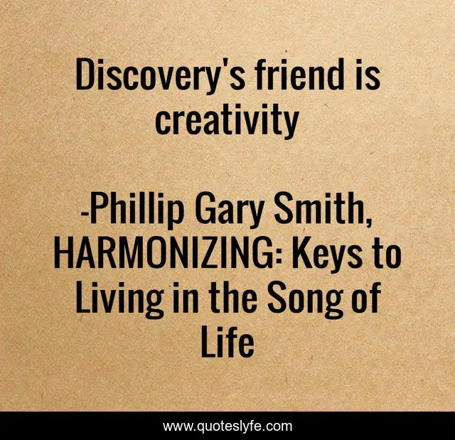 "Phillip Gary Smith, HARMONIZING: Keys to Living in the Song of Life Quotes." Quoteslyfe.com, 2025. Fri. 05 Dec. 2025. <https://www.quoteslyfe.com/quote/Discovery-s-friend-is-creativity-108669>.