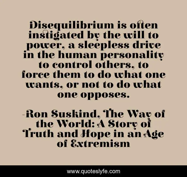 "Ron Suskind, The Way of the World: A Story of Truth and Hope in an Age of Extremism Quotes." Quoteslyfe.com, 2025. Sat. 06 Dec. 2025. <https://www.quoteslyfe.com/quote/Disequilibrium-is-often-instigated-by-the-will-160958>.