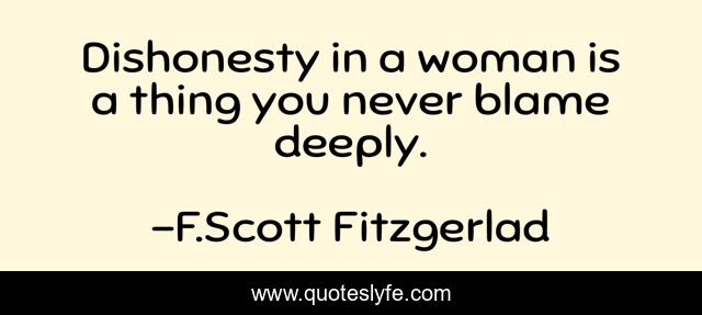 This page presents the quote "Dishonesty in a woman is a thing you never blame deeply.". Author of this quote is F.Scott Fitzgerlad. This quote is about lies, honesty, women,.