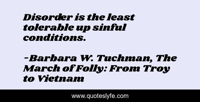 "Barbara W. Tuchman, The March of Folly: From Troy to Vietnam Quotes." Quoteslyfe.com, 2025. Fri. 05 Dec. 2025. <https://www.quoteslyfe.com/quote/Disorder-is-the-least-tolerable-up-sinful-160966>.