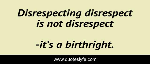 "it’s a birthright. Quotes." Quoteslyfe.com, 2025. Sun. 07 Dec. 2025. <https://www.quoteslyfe.com/quote/Disrespecting-disrespect-is-not-disrespect-184938>.