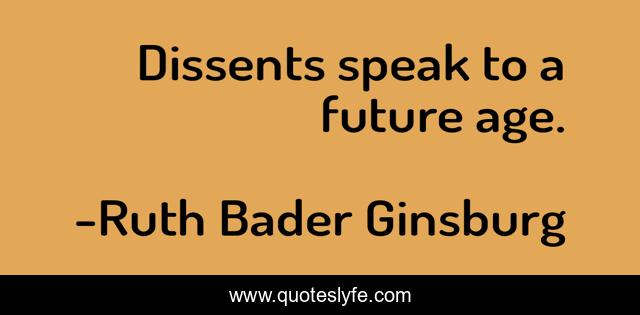 This page presents the quote "Dissents speak to a future age.". Author of this quote is Ruth Bader Ginsburg. This quote is about future, speak,.