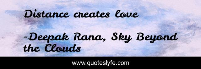 This page presents the quote "Distance creates love". Author of this quote is Deepak Rana, Sky Beyond the Clouds. This quote is about love-story, love, love-and-saying, affection,.
