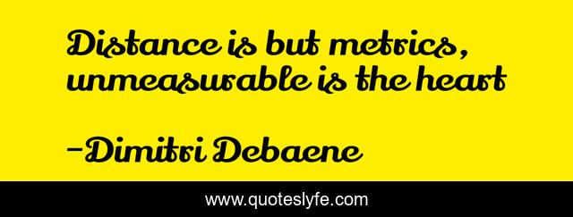 "Dimitri Debaene Quotes." Quoteslyfe.com, 2025. Sat. 06 Dec. 2025. <https://www.quoteslyfe.com/quote/Distance-is-but-metrics-unmeasurable-is-the-81156>.