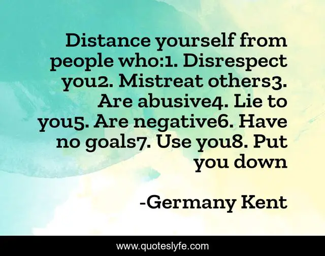 "Germany Kent Quotes." Quoteslyfe.com, 2025. Sun. 07 Dec. 2025. <https://www.quoteslyfe.com/quote/Distance-yourself-from-people-who-1-Disrespect-37855>.